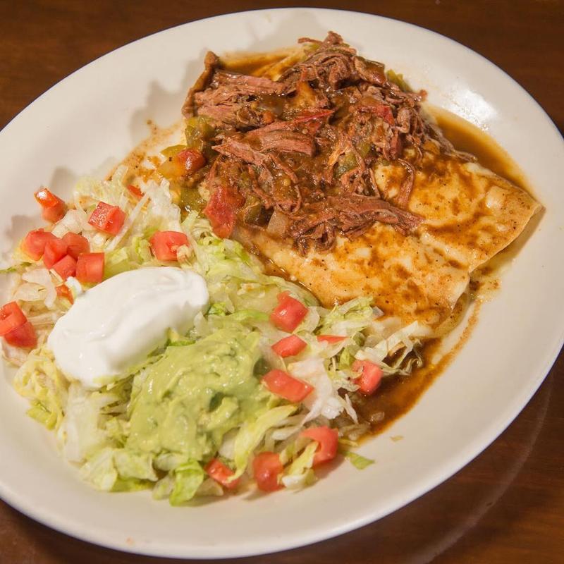 $7.99 • Served with Mexican rice and refried beans. | Extra Cheese Dip on Any Item $2.49 |